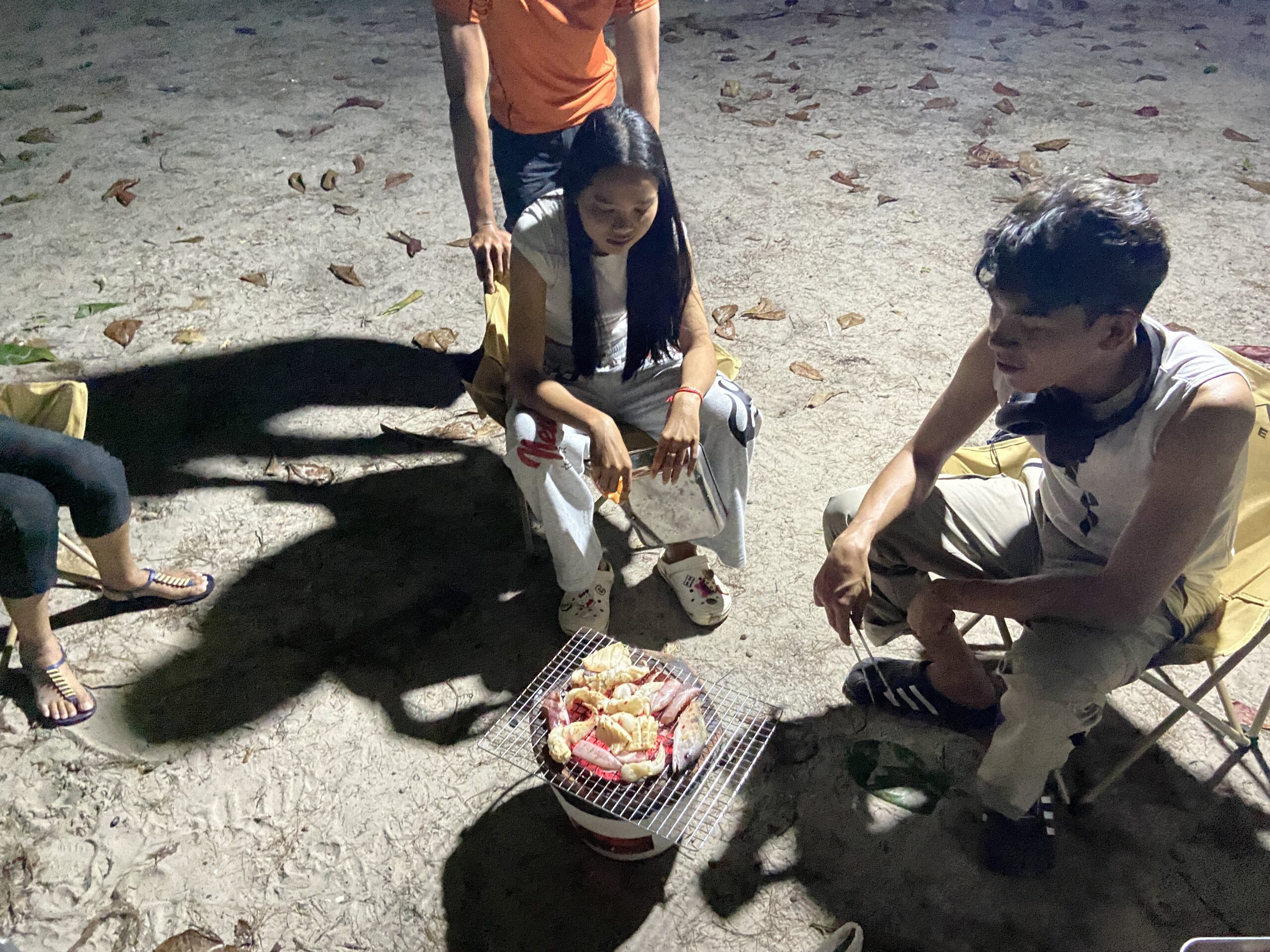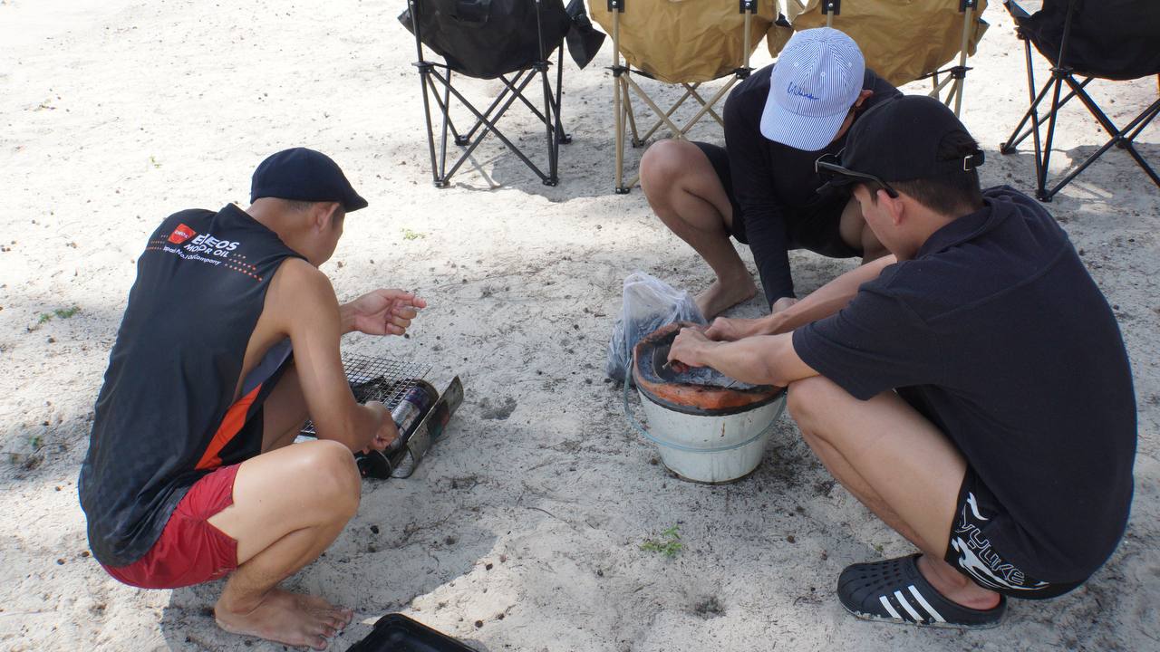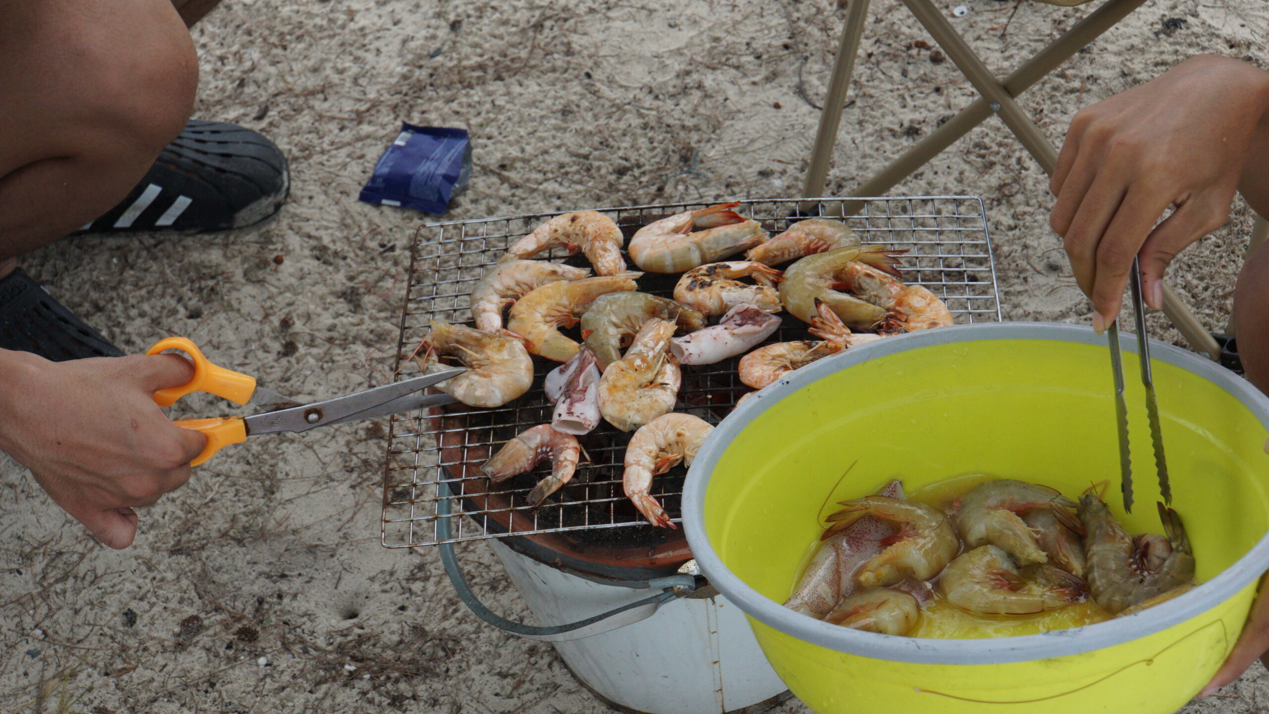 ビーチへの帰り道に捕まえたイカも一緒にBBQ。