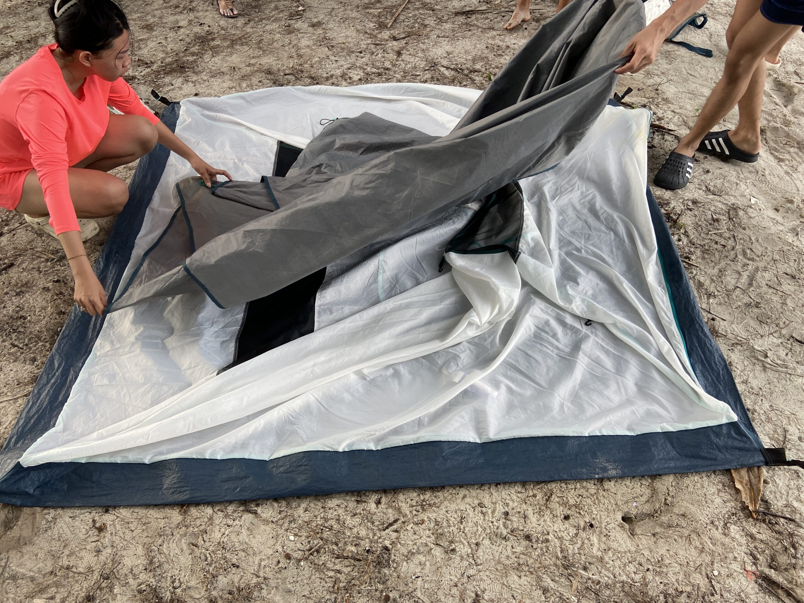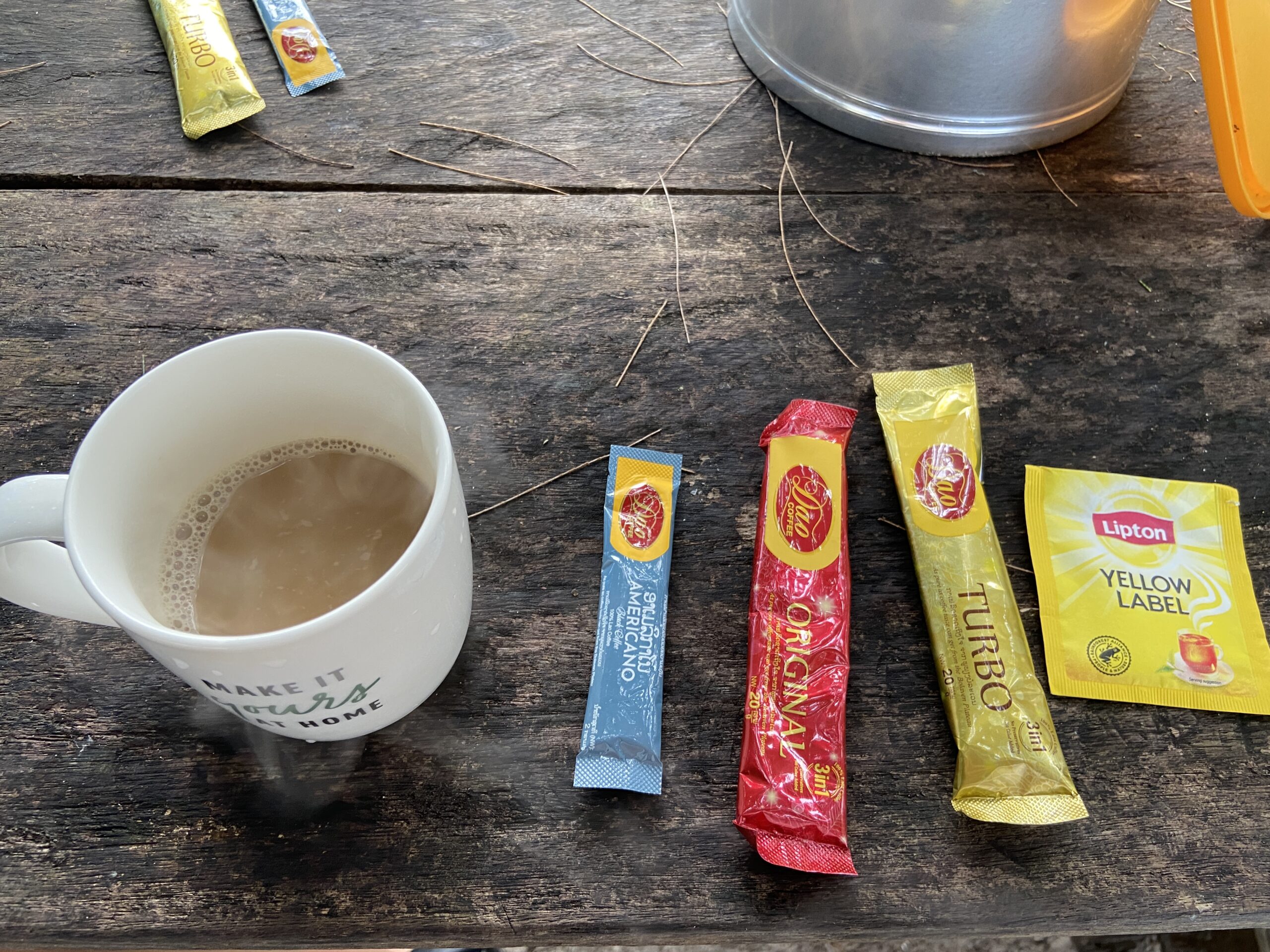 6:00。まだ薄暗いキャンプ地で、波の音だけが静かに響きます。