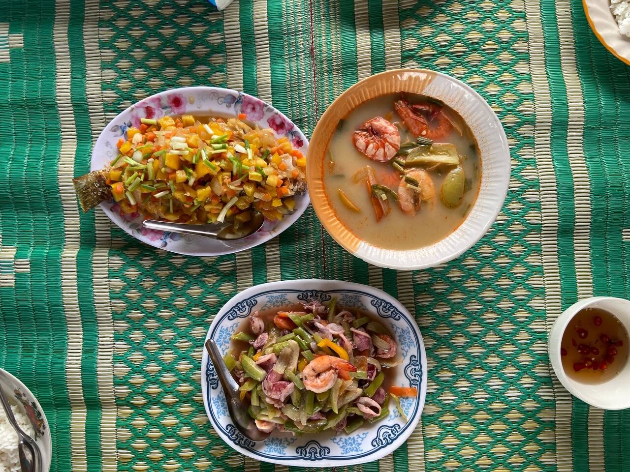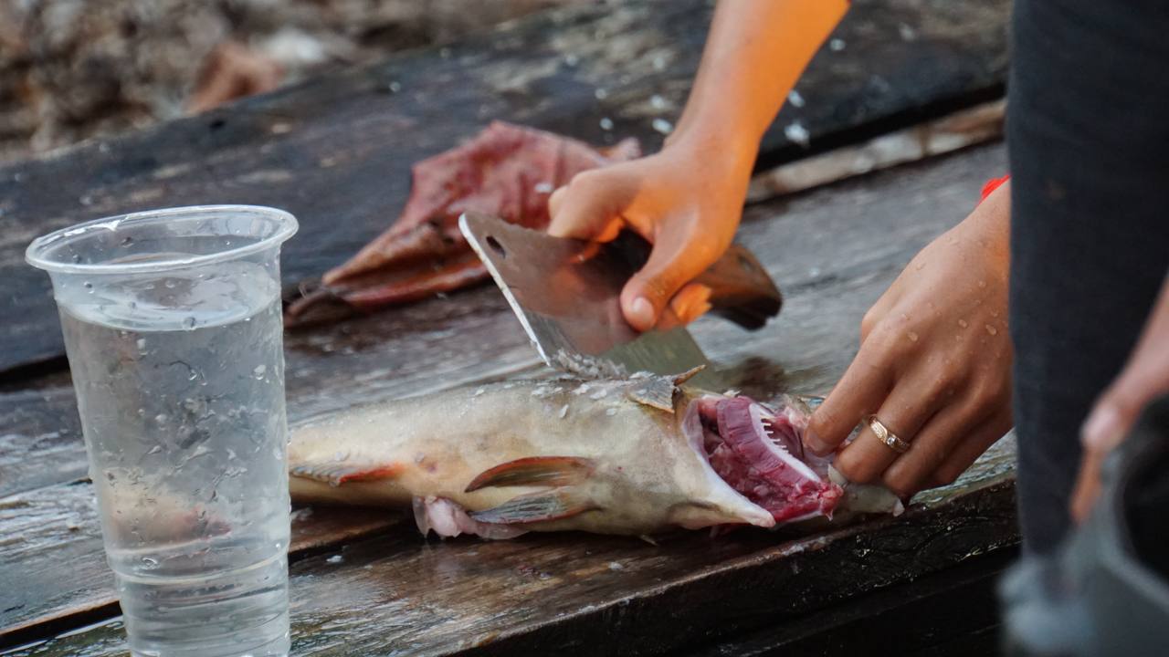 昼に船長息子が釣ってくれた魚も一緒にいただきます。