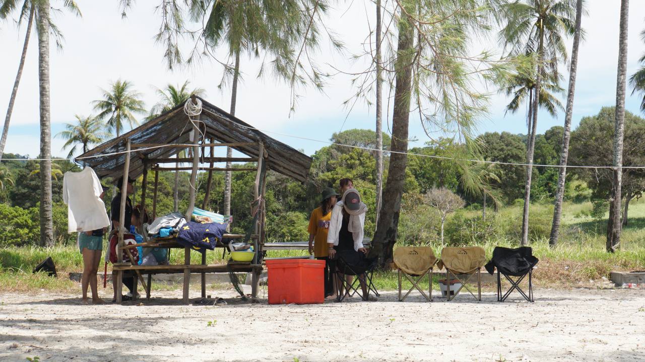 ツアーリーダーは船酔いでつぶれ、岸のほうで昼寝笑