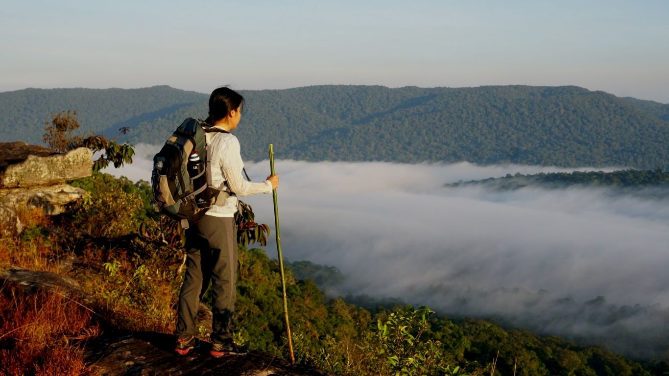 カルダモン山脈。コンポンスプ―州、ポーサット州、コンポンチュナン州にまたがり、カンボジアの最高峰であるアオラル山(標高1813m)を有しています。山脈内に位置し、少し軽めのハイキングが楽しめるクノンクロプーへの1泊2日の旅。都会の喧騒とはかけ離れた広大な自然で過ごす二日間をお楽しみください。