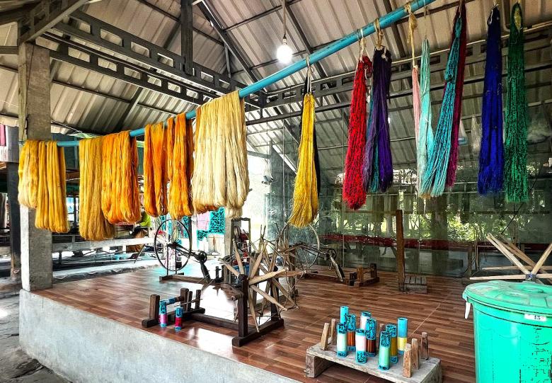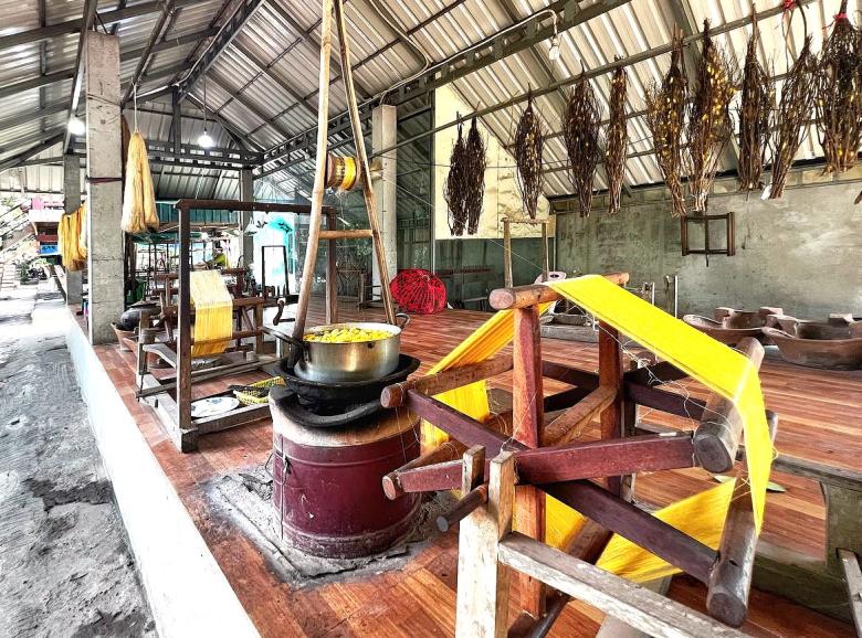 ホテル発→島へ向かう→フェリーでシルクアイランド(アニャテイ島)へ→機織村見学と民家訪問(約1時間)→フェリー→ホテル着